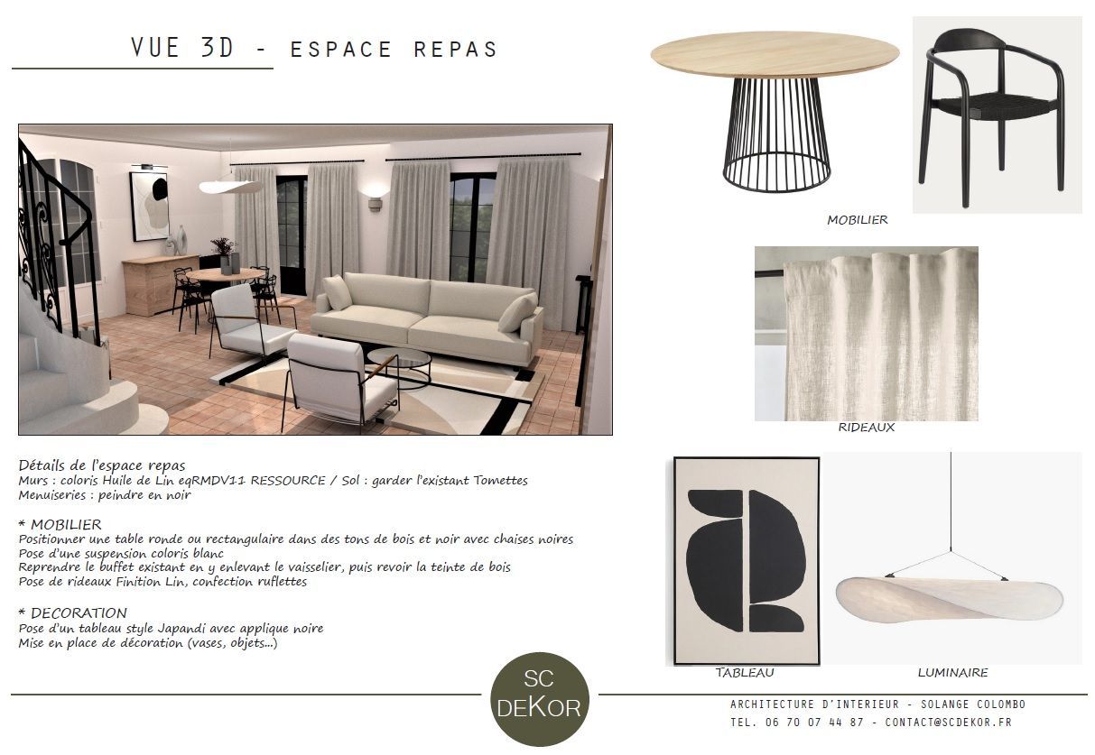 - Une fois votre projet d’aménagement arrêté, je vous propose un descriptif de chantier avec l’ensemble des éléments techniques qui seront utilisés lors des travaux de rénovation : dossiers de plan d’implantation côté, coupes, élévations, vues 3D, plan électrique.